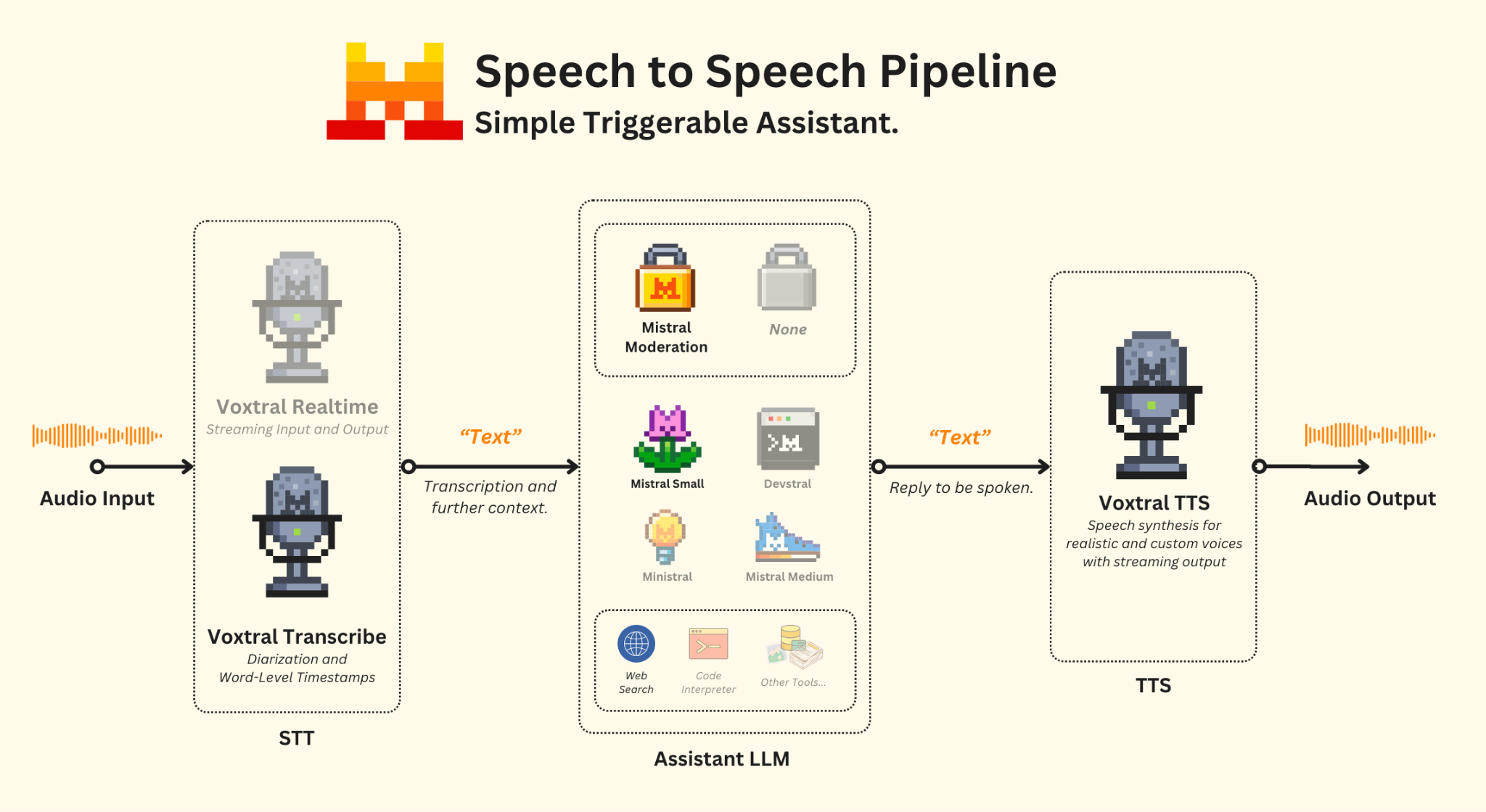 - Transcription: We will use Voxtral Transcribe, as real-time transcription is not required.
